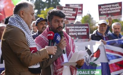 Filistin'in işgaline zemin hazırlayan 1917 tarihli Balfour Deklarasyonu, 107'inci yılında Ankara'daki Birleşik Krallık Büyükelçiliği önünde protesto edildi.