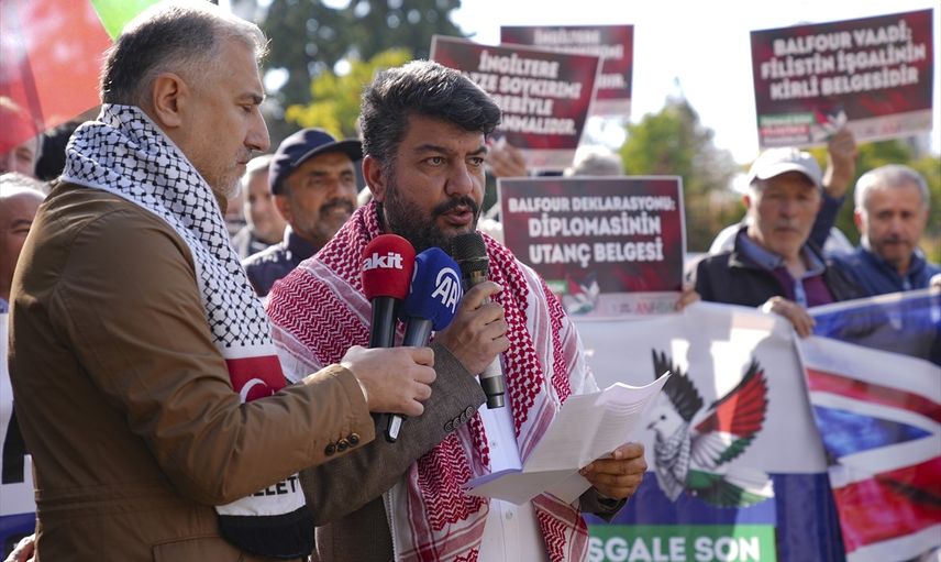 Ankara Filistin Dayanışma Platformu (ANFİDAP) tarafından düzenlenen eylemde, katılımcılar İngiltere aleyhine sloganlar atarak protesto gösterisinde bulundu. Eylemde grup adına basın açıklamasını yapan ANFİDAP İcra Kurulu Üyesi Aziz Oğuzhan Karaman, Balfour Deklarasyonu'nun tarihsel bir olay olmadığını vurgulayarak, "Balfour Deklarasyonu, Filistin'deki soykırımı simgeleyen bir gerçekliktir." ifadesini kullandı.