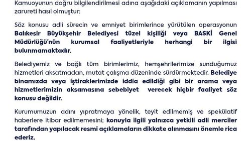Balıkesir’de imar yolsuzluğu iddiasıyla dört kişi gözaltına alındı. Balıkesir Büyükşehir Belediyesi, operasyonun kurumla bağlantısı olmadığını bildirdi.