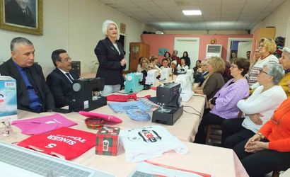 Balıkesir'in Burhaniye ilçesinde Kaymakam Cumali Atilla, giyim atölyesine 9 makine bağışlayan hayırsever Yeşim Meço Davutoğlu'na teşekkür belgesi takdim etti. Ziyarette atölyede eğitim gören kursiyer kadınlarla sohbet edildi ve yürütülen faaliyetler yerinde incelendi.