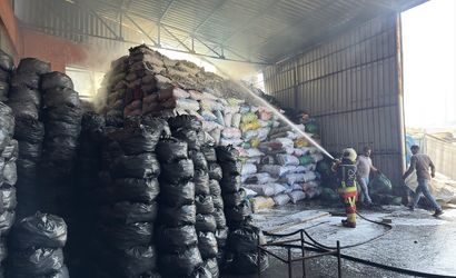 Balıkesir'in merkez Altıeylül ilçesindeki mobilya atölyesinde başlayıp mangal kömürü deposuna sıçrayan yangın hasara neden oldu.