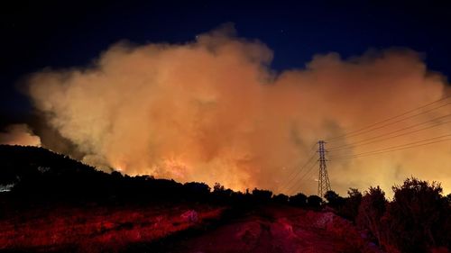 Balıkesir'deki orman yangınına müdahale devam ediyor; Bahadır Mahallesi tedbiren boşaltıldı.