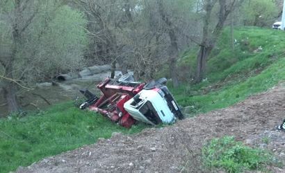 İş makinesi şarampole yuvarlandı: 1 ölü