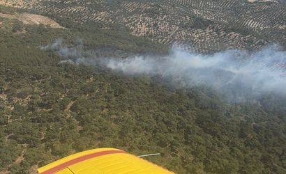 Balıkesir'in Burhaniye ilçesinde çıkan arazi ve orman yangınına, havadan ve karadan müdahale ediliyor.