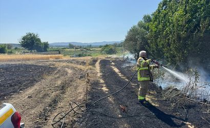Balıkesir'in Savaştepe ilçesinde meydana gelen yangında, 12 dekarlık arpa tarlasında hasar oluştu. Yangın, Yeşilhisar Mahallesi Yağcıllı Deresi mevkisinde, sulama hattındaki çalışma sırasında metal bir borunun kesilmesiyle çıkan kıvılcımların otları tutuşturması sonucu başladı.
