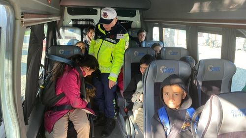 Balıkesir İl Jandarma Komutanlığı, yılbaşı öncesi okul çevreleri ve servis araçlarını denetledi; yüzlerce araç ve binlerce kişi kontrollü, öğrencilere trafik eğitimi verildi.