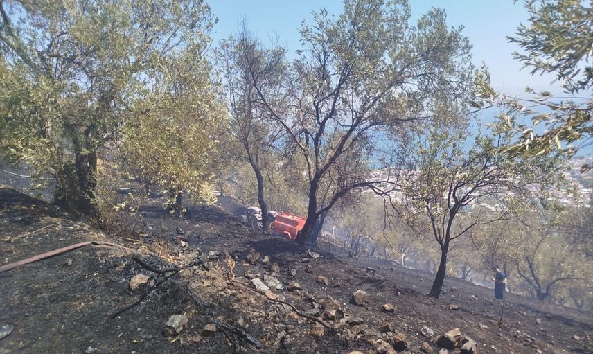 Balıkesir'in Edremit ilçesinde zeytinlik alanda çıkan yangın havadan ve karadan müdahaleyle kontrol altına alındı.