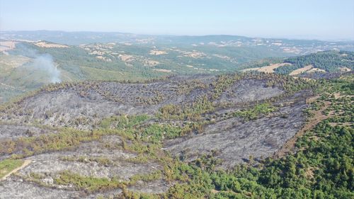 Balıkesir'in Savaştepe ve Altıeylül ilçeleri arasındaki orman yangınına karadan ve havadan müdahale sürüyor.