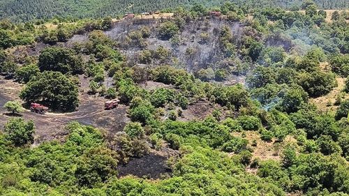 Balıkesir'in Kepsut ilçesindeki yangın, Orman Bölge Müdürlüğü ve itfaiye ekiplerinin müdahalesiyle kontrol altına alınmaya çalışılıyor.