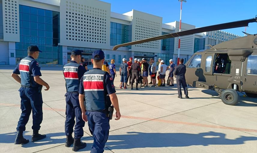 Balıkesir'in Edremit ilçesindeki Şahindere Kanyonu'nda mahsur kalan 10 kişilik grup, gerçekleştiren helikopter operasyonlarıyla kurtarıldı.