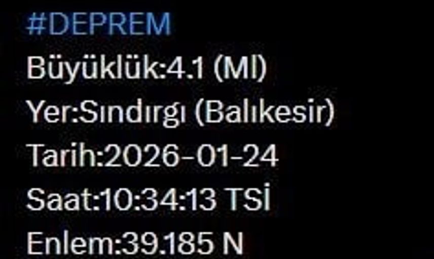 AFAD'ın paylaştığı bilgilere göre, deprem Balıkesir'in Sındırgı ilçesinde saat 10.34'te kaydedildi.