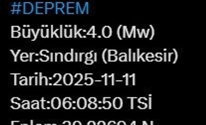 AFAD'ın paylaştığı bilgilere göre, merkezi Sındırgı ilçesi olan deprem saat 06.08'de kaydedildi.