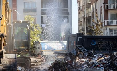 Ekipler, enkazdan çıkan molozları iş makineleri eşliğinde kamyonlara yüklerken, binada yaşayanların kişisel eşyalarının çıkarılması gerektiği durumlarda çalışmalara ara verildiği bildirilmektedir. Bu anlar, Anadolu Ajansı ekibi tarafından görüntülenmiştir.