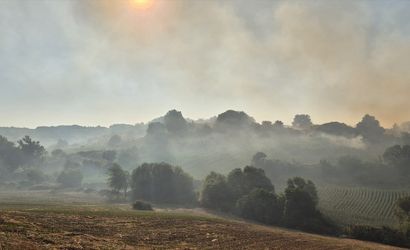 Balıkesir'in Susurluk ilçesinde, arazide çıkan yangın, havadan ve karadan müdahaleyle kontrol altına alınmaya çalışılıyor.