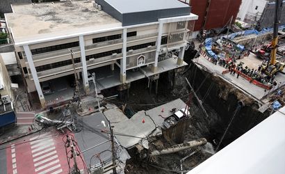 Bangkok'ta yol çökmesi sonucu 50 metre derinliğinde çukur oluştu