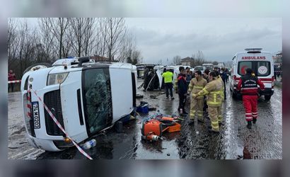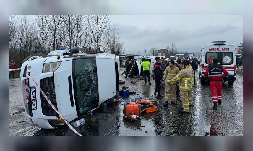 Bartın Kurtköy mevkisinde 67 yaşındaki Necmi G. İdaresindeki işçi minibüsü, aynı yönde 50 yaşındaki Erol A. İdaresindeki işçi servisi ile çarpıştı! Çarpışmanın etkisiyle servisler devrildi.