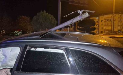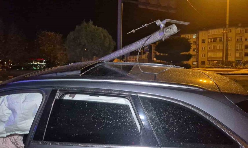 Bartın'da sağanak yağış nedeniyle ıslanan yolda kontrolden çıkan araç, trafik ışıklarının bulunduğu direğe çarparak, direğin aracın üstüne devrilmesine neden oldu. Olay yerinden kaçan sürücü ise otomobili bırakıp uzaklaştı.