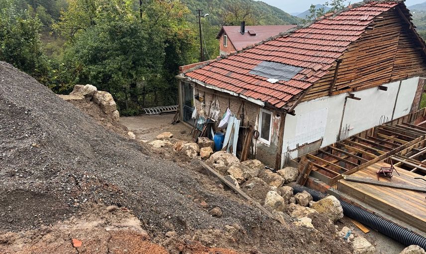 Ekiplerin aynı bölgede risk taşıyan bir evle ilgili teknik incelemesi sürüyor.