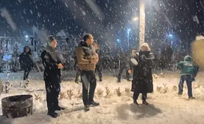 Protokol ve kent sakinleri meydanda kar topu oynadı, halay çekti