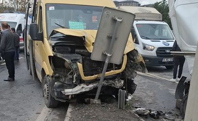İstanbul Başakşehir'de, Avrupa Otoyolu yan yol caddesi üzerinde saat 11.00 sıralarında zincirleme bir kaza meydana geldi. Kazada yolcu minibüsü, bir bankaya ait para transfer aracı ve hafif ticari araç çarpıştı.