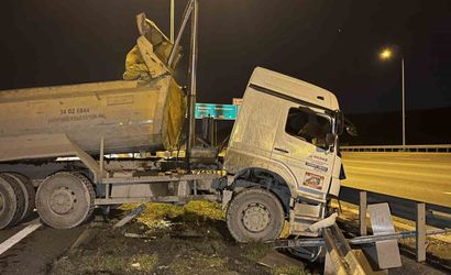 Başakşehir'de hafriyat kamyonu bariyere girdi: Sürücü ağır yaralandı