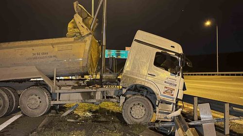 Başakşehir'de hafriyat kamyonu bariyere girdi: Sürücü ağır yaralandı