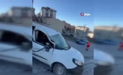 Başakşehir'de, tırın arkasında taşınırken kopan bir vinç iki araca ve bir binaya çarparak durdu.