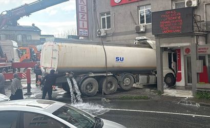 Başakşehir'de su tankeri, tıp merkezinin bulunduğu binadaki boş iş yerine çarptı.