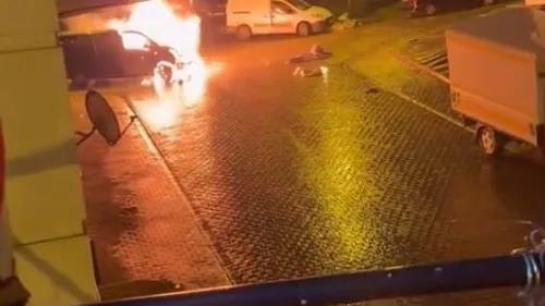 Başakşehir Güvercintepe Mahallesi Şentepe Sokak'ta bir araç bilinmeyen nedenle yandı; itfaiye kısa sürede söndürdü, anlar cep telefonu kamerasına yansıdı.