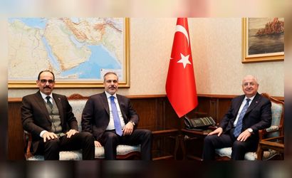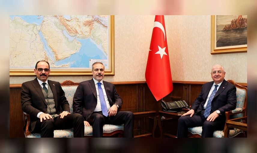 İbrahim Kalın ve Hakan Fidan, Milli Savunma Bakanlığı’na (MSB) giderken, konuya yönelik paylaşım da MSB’den geldi. Bakan Güler, Fidan ve Kalın’ı ayrı ayrı bakanlık girişinde karşıladı. Karşılama sonrasında ise basına kapalı toplantı başlatıldı.