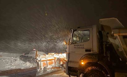 Aracın bulunduğu yerden çıkarılması için Başkale Belediyesi karla mücadele ekipleri devreye girdi. Ekipler, belediyeye ait iş makinesi ile otomobili kar birikintisinden kurtardı.
