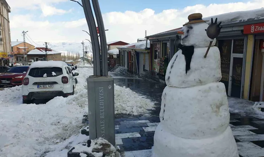 VAN’IN BAŞKALE İLÇESİNDE KAR YAĞIŞININ ETKİSİNİ KAYBETMESİNİN ARDINDAN TEMİZLİK ÇALIŞMASI BAŞLATILIRKEN, FAZLA MÜŞTERİ BULAMAYAN ESNAF İSE KARDAN ADAM YAPARAK ZAMAN GEÇİRDİ.