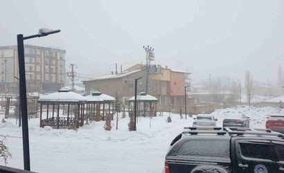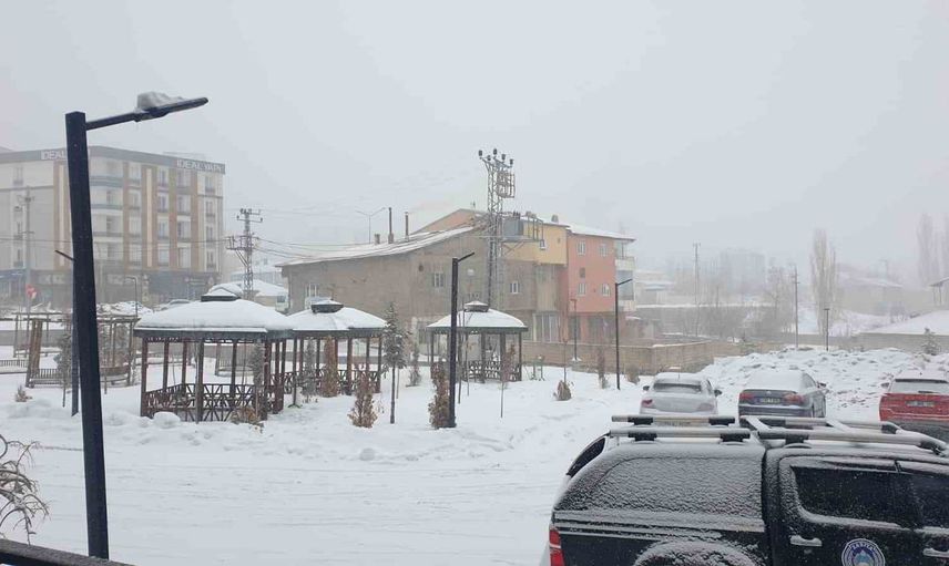 Van’ın Başkale ilçesinde öğle saatlerinde etkili olan rüzgârlı ve soğuk hava yerini kar yağışına bıraktı. Kısa sürede ilçe beyaza büründü.