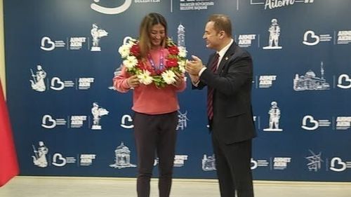 Başkan Ahmet Akın, dünya şampiyonu Nafia Kuş Aydın ve uluslararası dereceler elde eden Balıkesirli milli sporcuları belediyede kabul ederek tebrik etti.