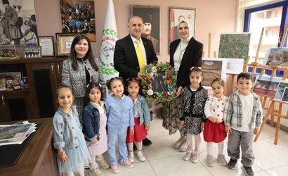 Etkinliğe, Hayme Hatun Anaokulu Müdürü Seda Kılınç ve öğretmen Tuğçe Kanlı eşlik etti. Öğrencilerin neşesi ve enerjisi belediye binasına renk kattı.