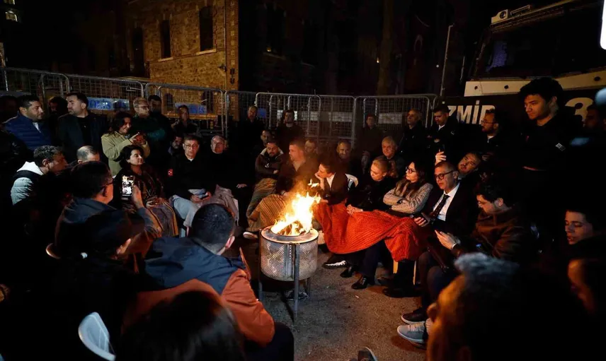 İzmir Büyükşehir Belediye Başkanı Cemil Tugay, Vakıflar Genel Müdürlüğünün mülkiyetine geçen Meslek Fabrikası binası önünde gece boyunca sürdürdüğü nöbete devam ediyor. Polis bariyerleriyle çevrili binanın önünde CHP İzmir İl Başkanı Çağatay Güç, ilçe belediye başkanları, meclis üyeleri ve partililerle birlikte nöbet tutan Tugay, sabah saatlerinde basın mensuplarına açıklamalarda bulundu.