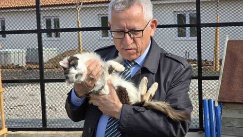 Yozgat Belediye Başkanı Kazım Arslan, makamındaki kedilerle çalışıyor; 'Evcil Köy' projesiyle sokak hayvanlarına barınma, veteriner ve beslenme olanakları sunmayı hedefliyor.
