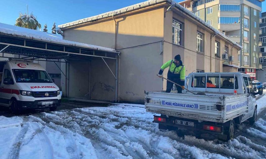 Terme Belediyesi, karla mücadele çalışmalarını yağışın etkisini kaybedeceği sürece aynı titizlikle sürdüreceğini bildirdi. Belediye yetkilileri, koordinasyon ve önceliklendirme ile hizmetlerin kesintisiz devam ettirileceğini açıkladı.