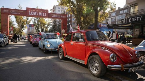 Çankaya Belediyesi Gençlik Bandosu, 29 Ekim Cumhuriyet Bayramı'nda Bahçelievler 7. Cadde'de kortej yürüyüşü düzenledi; marşlar ve vosvos konvoyu ile vatandaşlar bayraklarla eşlik etti.