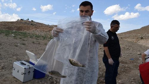 Batman'daki baraj gölündeki balık ölümlerine ilişkin yeni numuneler alındı, uzman incelemeleri sürüyor.