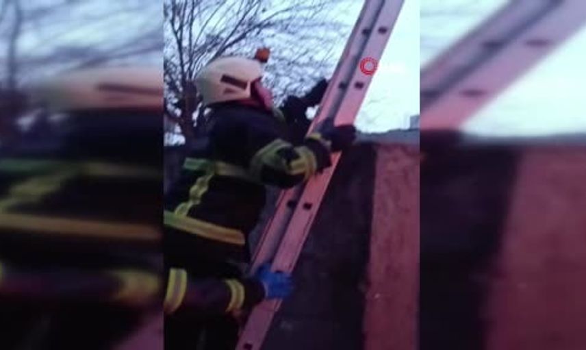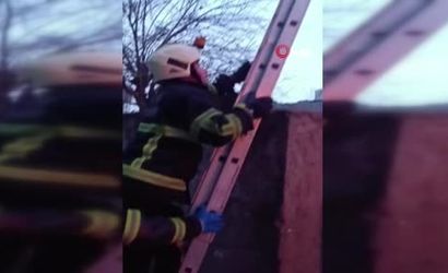 Direkte mahsur kalan kedi itfaiye tarafından indirildi