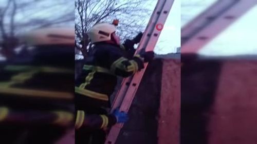 Batman Merkez Kısmet Mahallesi'nde direkte mahsur kalan ev kedisi, 112 ihbarı sonrası itfaiye ekipleri tarafından merdivenle indirildi ve sahibine teslim edildi.