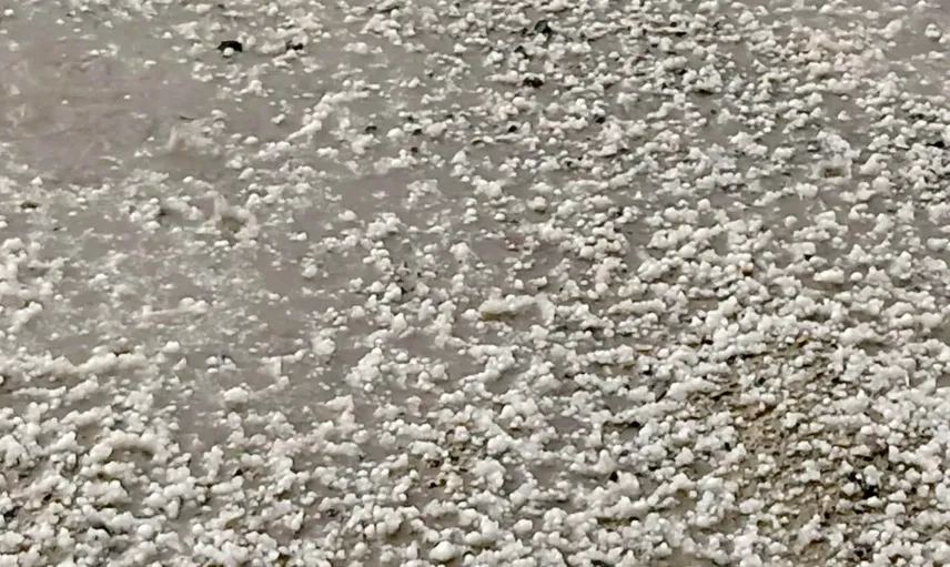 FINDIK BÜYÜKLÜĞÜNDEKİ DOLU, KENTİ ADETA BEYAZA BÜRÜDÜ.