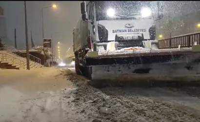 Batman Belediyesi ve Karayolları ekipleri, kar küreme ve tuzlama çalışmalarını aralıksız sürdürüyor. Ekipler, ana arterler ve yoğun kullanılan güzergâhları açık tutmak için öncelikli müdahaleler yapıyor.