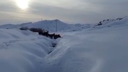 Batman Kozluk Geçitaltı Höv mezrasında yoğun kar nedeniyle Mereto Dağı eteklerinde mahsur kalan 6 katır, köylülerin müdahalesiyle kurtarıldı.