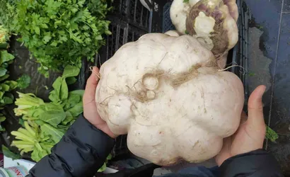 BATMAN’DA SEMT PAZARINDA TEZGÂHA KONULAN YAKLAŞIK 4 KİLOGRAM AĞIRLIĞINDAKİ DEV ŞELİM (TURP), VATANDAŞLARIN BÜYÜK İLGİSİNİ ÇEKTİ. NORMAL ŞARTLARDA 100 İLA 200 GRAM ARASINDA DEĞİŞEN TURPLARIN AKSİNE, BU SIRA DIŞI BÜYÜKLÜKTEKİ ÜRÜN PAZARA GELENLERİN HEM DİKKATİNİ ÇEKTİ HEM DE MERAK UYANDIRDI.