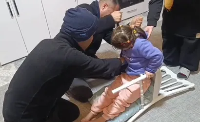 Ailenin uzun süren çabalarına rağmen kurtarılamayan çocuk için durum 112 Acil Çağrı Merkezi'ne bildirildi. İhbar üzerine adrese sevk edilen itfaiye ekipleri, çocuğa zarar vermemek amacıyla sandalyenin bir bölümünü dikkatlice ayırarak minik kızı güvenli şekilde kurtardı.