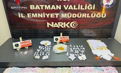 Batman'da düzenlenen uyuşturucu operasyonunda gözaltına alınan 3 zanlı tutuklandı. Operasyonda 58 parça halinde 63 gram sentetik uyuşturucu, 5 uyuşturucu hap ve uyuşturucu ticaretinden elde edildiği değerlendirilen 6 bin 990 lira ele geçirildi.