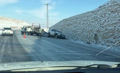 Batman-Hasankeyf kara yolunda, öğle saatlerinde buzlanmanın etkisiyle üç aracın karıştığı zincirleme trafik kazası meydana geldi.