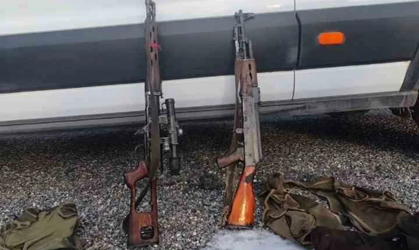 Yapılan aramalarda 1 adet ruhsatsız AK-47 kalaşinkof piyade tüfeği, 1 adet KNS dragunov keskin nişancı silahı, 7 adet şarjör, 80 adet 7.62x39 milimetre fişek ile 17 adet 7.62x54 milimetre fişek ele geçirildi.
